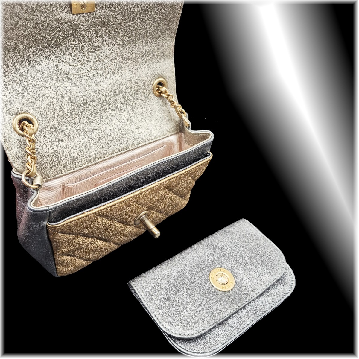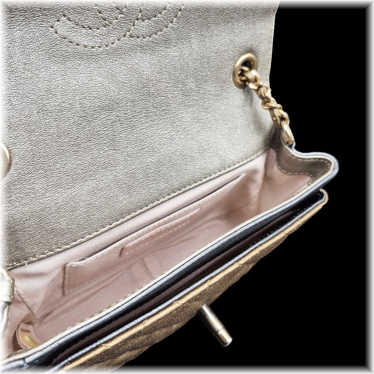 高級感漂うマトラッセステッチはシャネルの人気デザイン♪ こちらは斜め掛けも可能なミニサイズです☆ 気軽にお持ちいただくことが出来そうな逸品です!