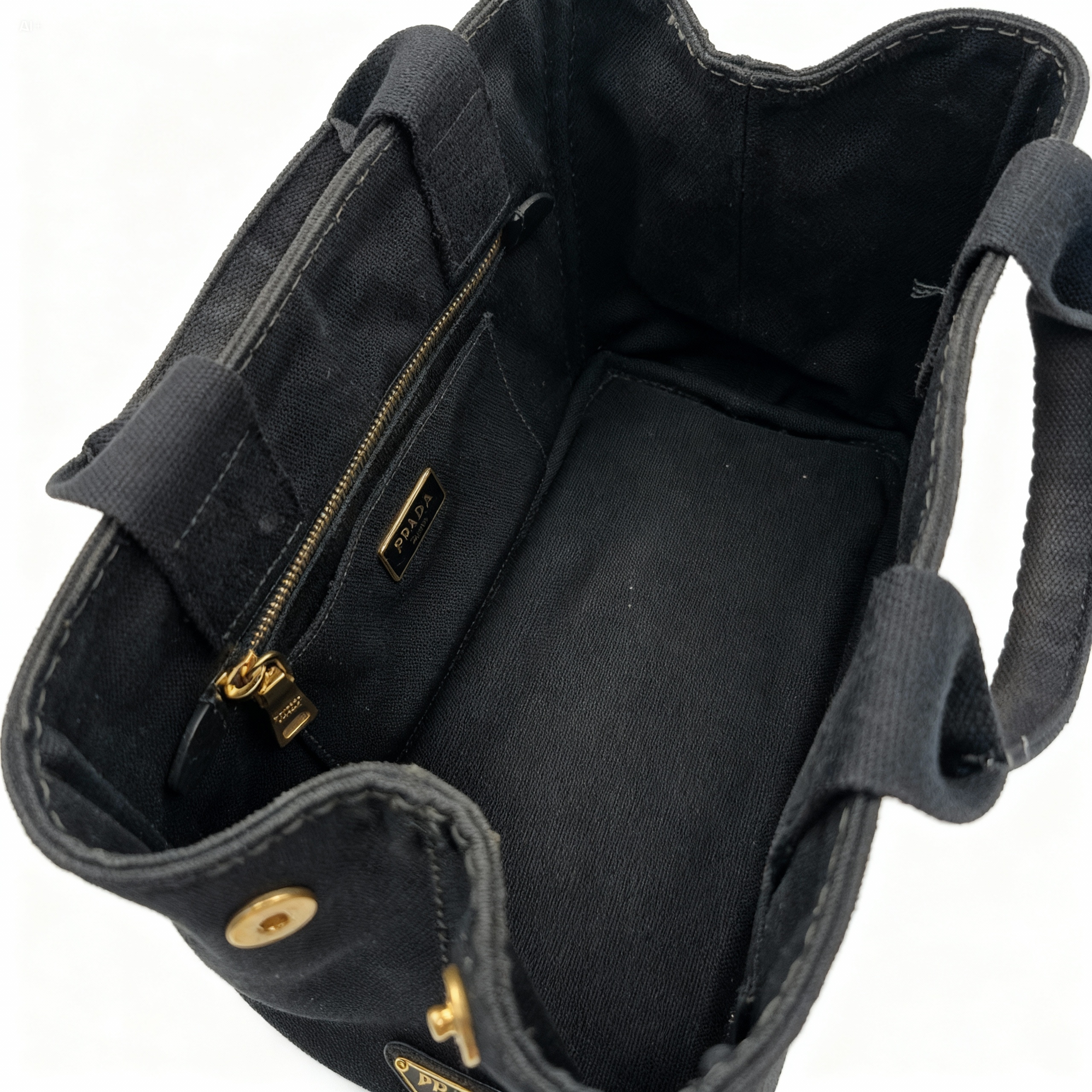 ユーズド加工のロゴプリント、サイドにはしっかりロゴプレートが施されているので、プラダの高級感もしっかりとアピールしてくれます♪