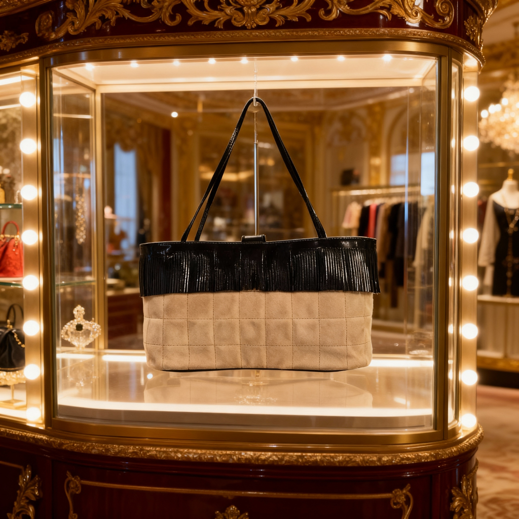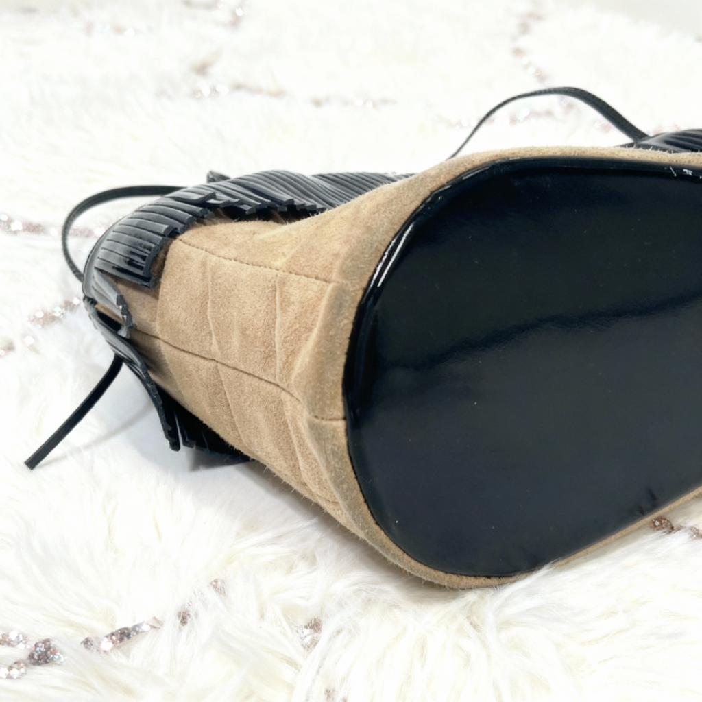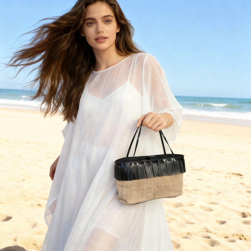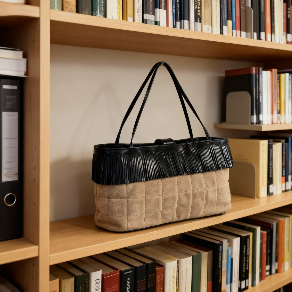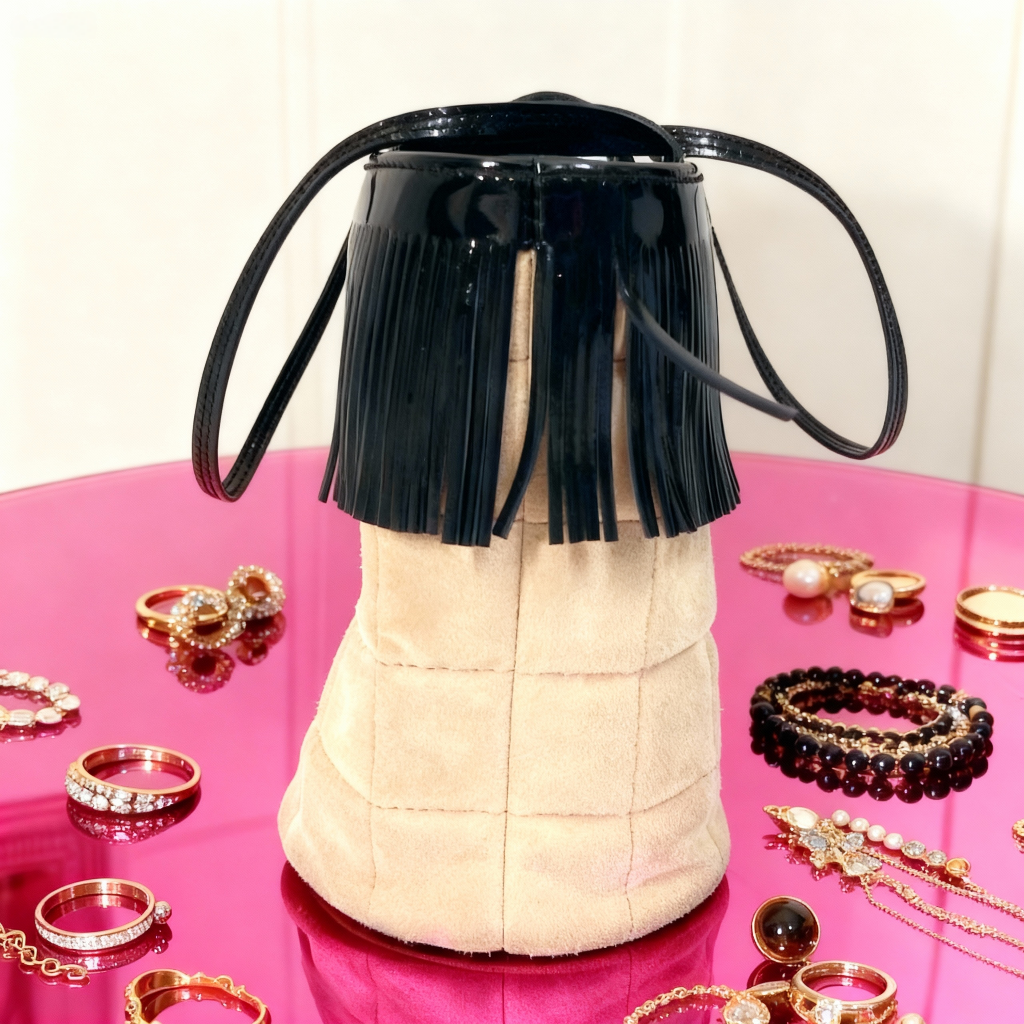 シャネルのチョコバーフリンジミニバッグ☆ 板チョコのような格子状のキルティングステッチが特徴的な「チョコバー」ラインのアイテムです。