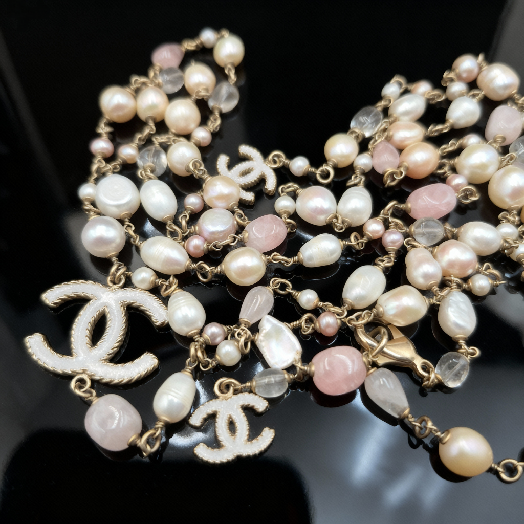 シックでエレガントなロングネックレス☆ 複数の色や形のパールを組み合わせた3連ネックレス。オシャレで綺麗です♬ ちょっとドレスアップした時はもちろん、エレガントにもカジュアルにもはまる、これ以上ない美しい胸元を彩ります。 グッとセレブな印象になります♪