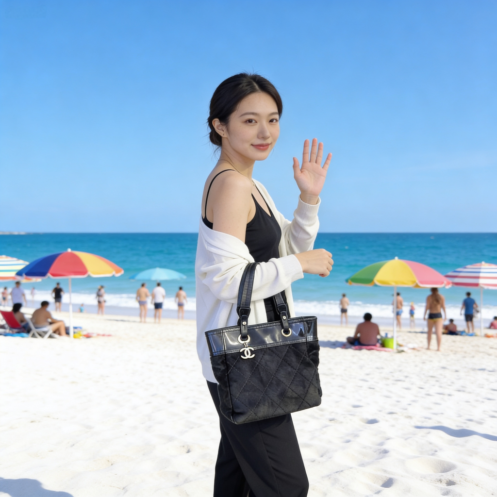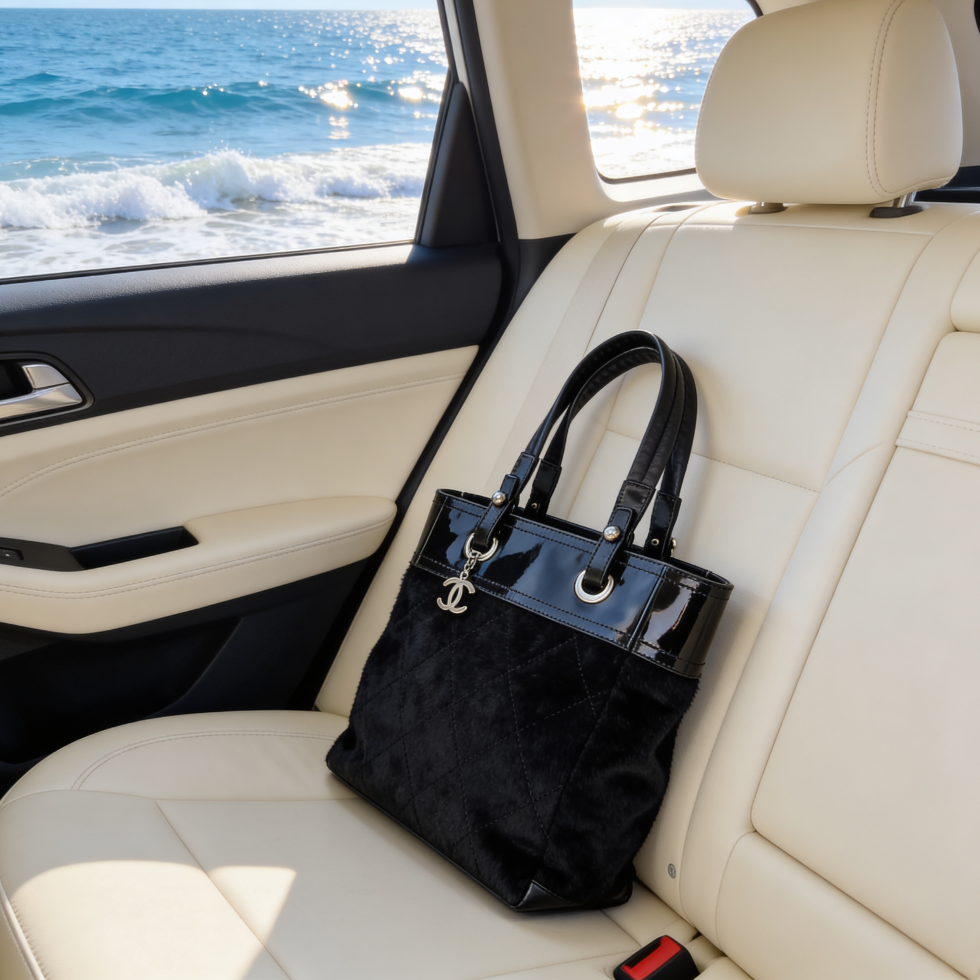 シャネル定番人気シリーズとなった「パリビアリッツ」♪ ダイヤモンドキルティングが施されたハラコ(毛皮)と光沢のあるパテントレザー(エナメル)を組み合わせた高級感のあるデザインが特徴です。 通勤や旅行など幅広く活用できる万能なアイテムです☆
