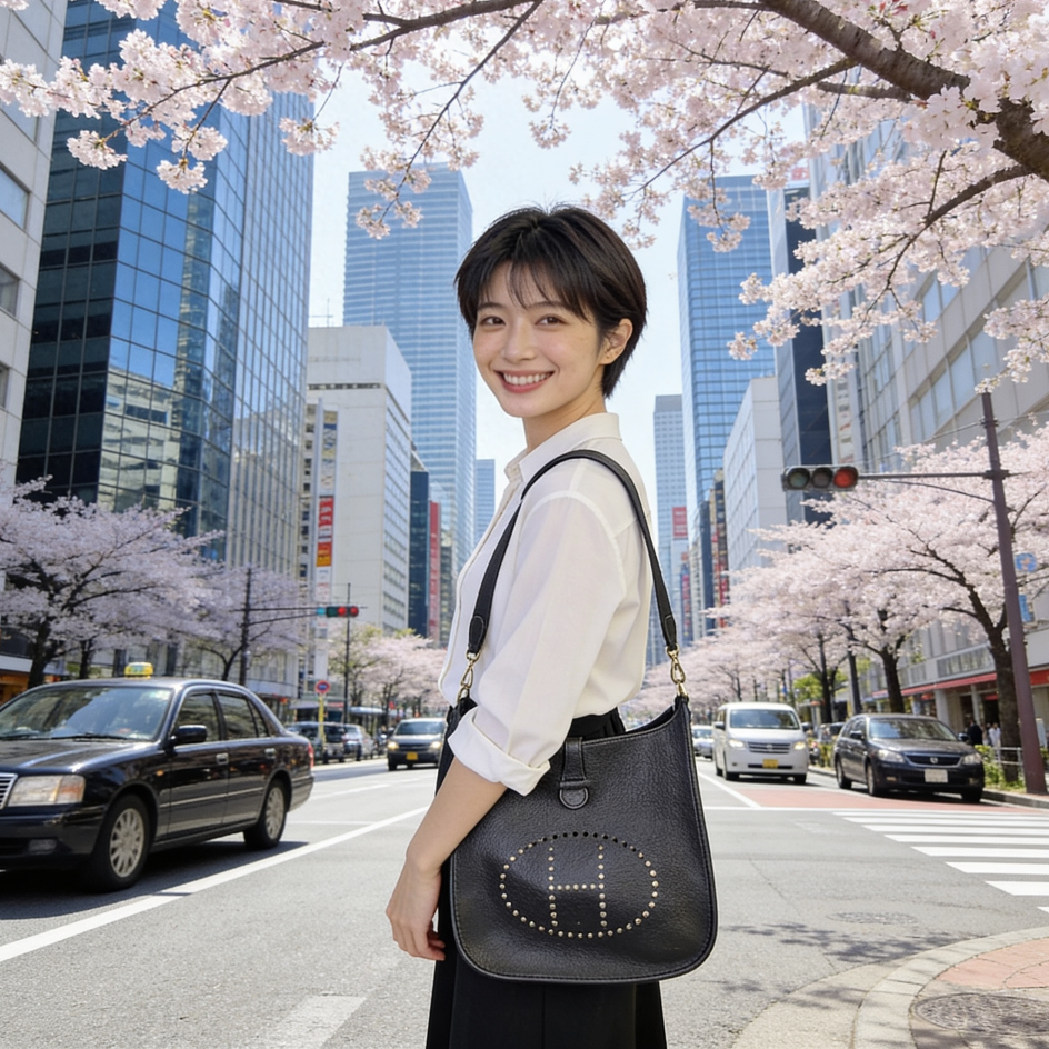 大人の上質カジュアルが楽しめるところが人気の「エブリンGM」素材は柔らかく上品な質感のトリヨンクレマンスです♪ 一目でブランドが判る正面のH型パンチングがポイントになっており、革の高級感とショルダーのカジュアルさがマッチしたお品です☆