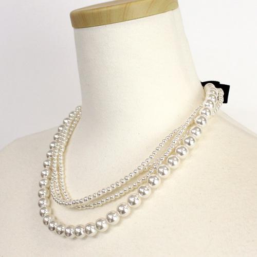 大・小パールの4連ネックレス☆ シンプルな4連は、デコルテを華やかに演出してくれます♪ バックリボンにラインストーンでフラワーをモチーフ、前・後ろ どこから見ても女性らしい印象に☆